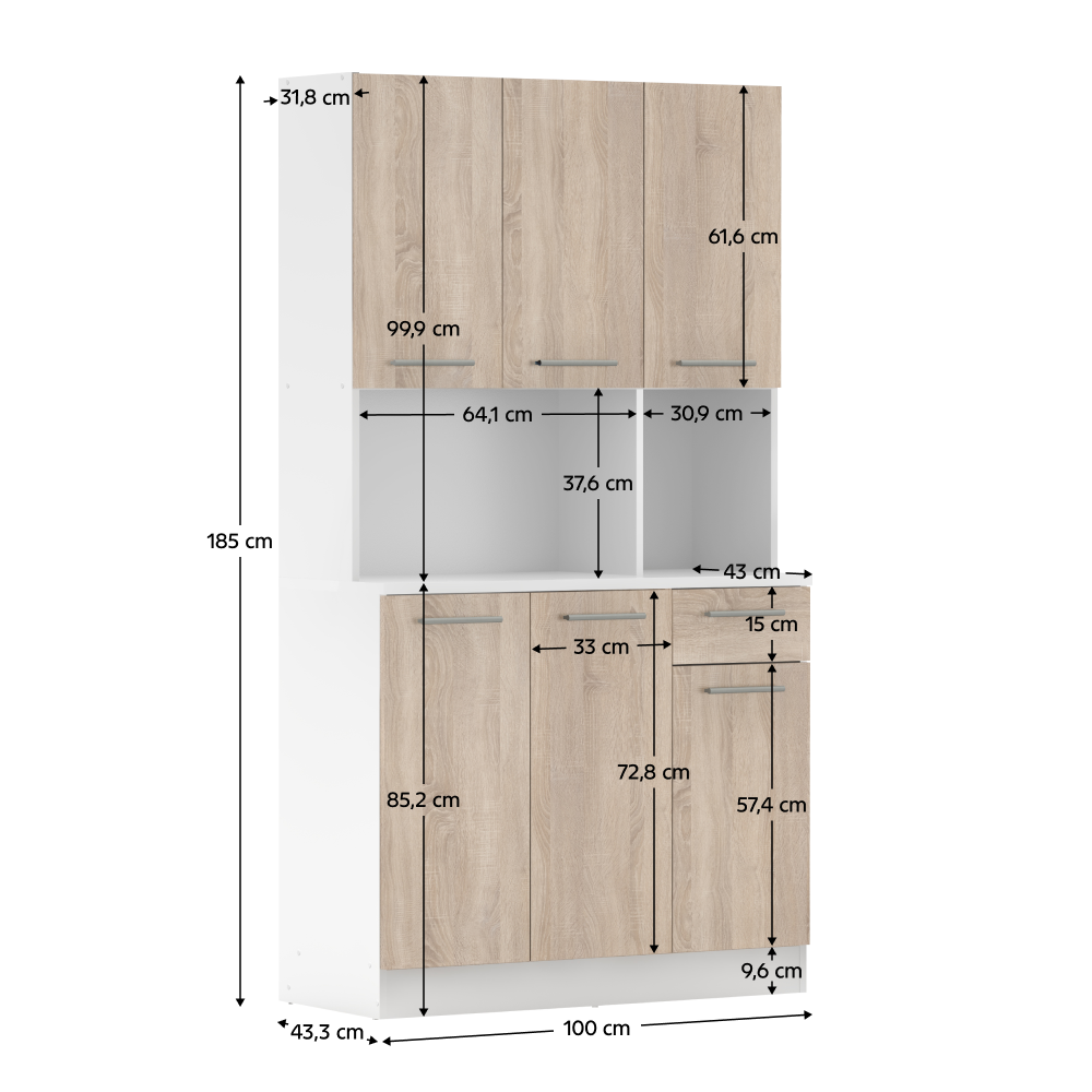 Méretek (SzxMéxMa): 100x43,3x185 cm
