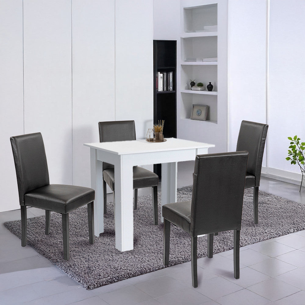 A Leziter Leon 4 személyes étkezőgarnitúra mindent tud, amit egy modern, megbízható bútortól elvársz. Az asztal strapabíró, fehér bútorlapból készült, mérete 86x60x76 cm, így kisebb helyiségekbe is tökéletesen illeszkedik, miközben kényelmes teret biztosít a közös étkezésekhez. A lapra szerelt kivitel gyors, egyszerű összeszerelést tesz lehetővé, a fém sarokmegerősítések pedig garantálják a stabilitást és a hosszú élettartamot.