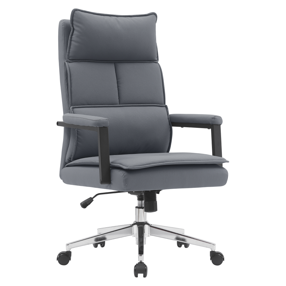 Irodai szék, szürke ekobőr/króm, KAHIL