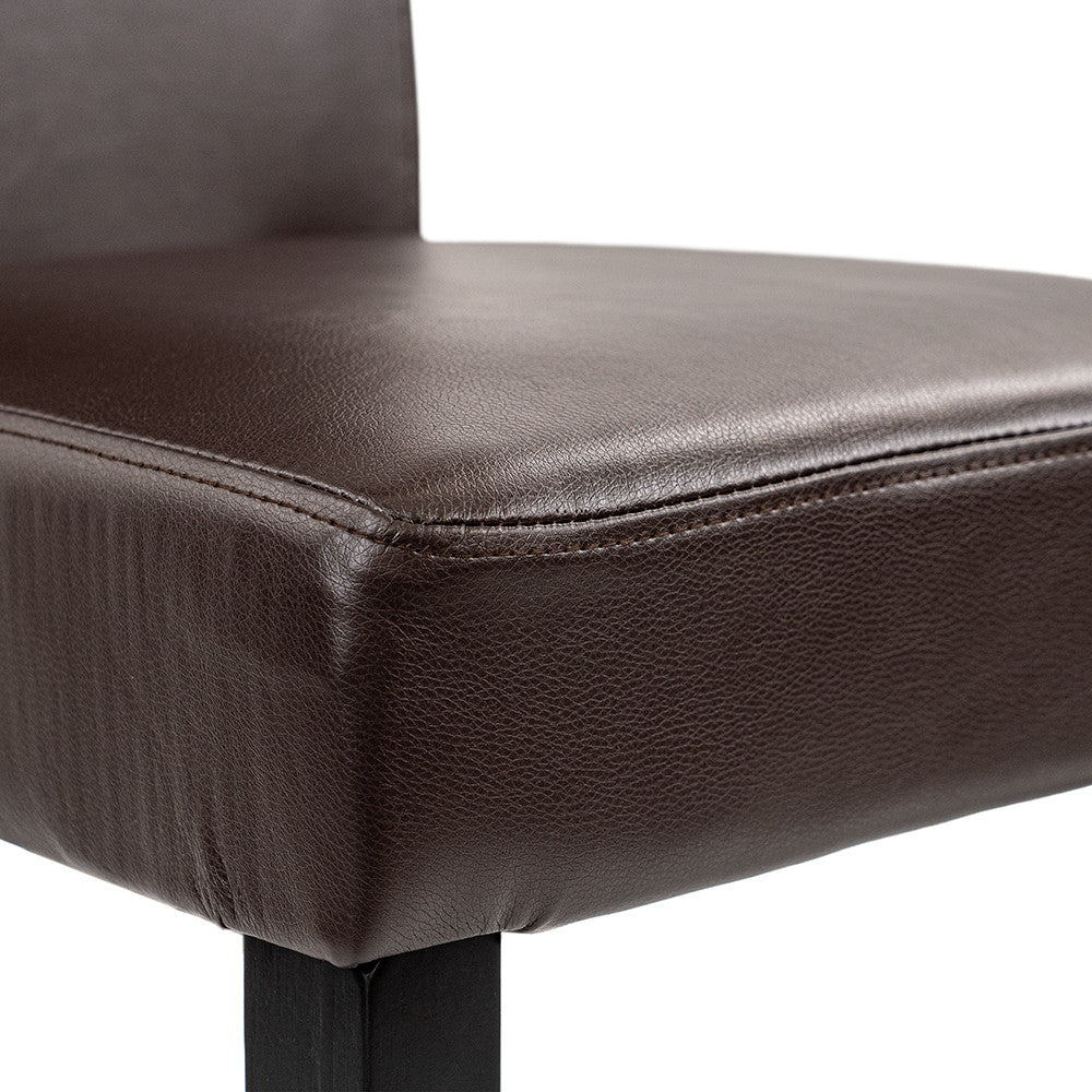 A Leziter Kelly székek extra kényelmet biztosítanak minden étkezés során. A barna ECO bőr borítás letisztult és elegáns, ráadásul könnyen tisztítható, így ideális választás családoknak, éttermeknek vagy irodai terekbe. Az ülőfelület újrahasznosított habszivacsból készül, amely nemcsak kényelmes, hanem környezetbarát megoldás is. A masszív fenyőfa lábak biztonságot és tartósságot nyújtanak.
