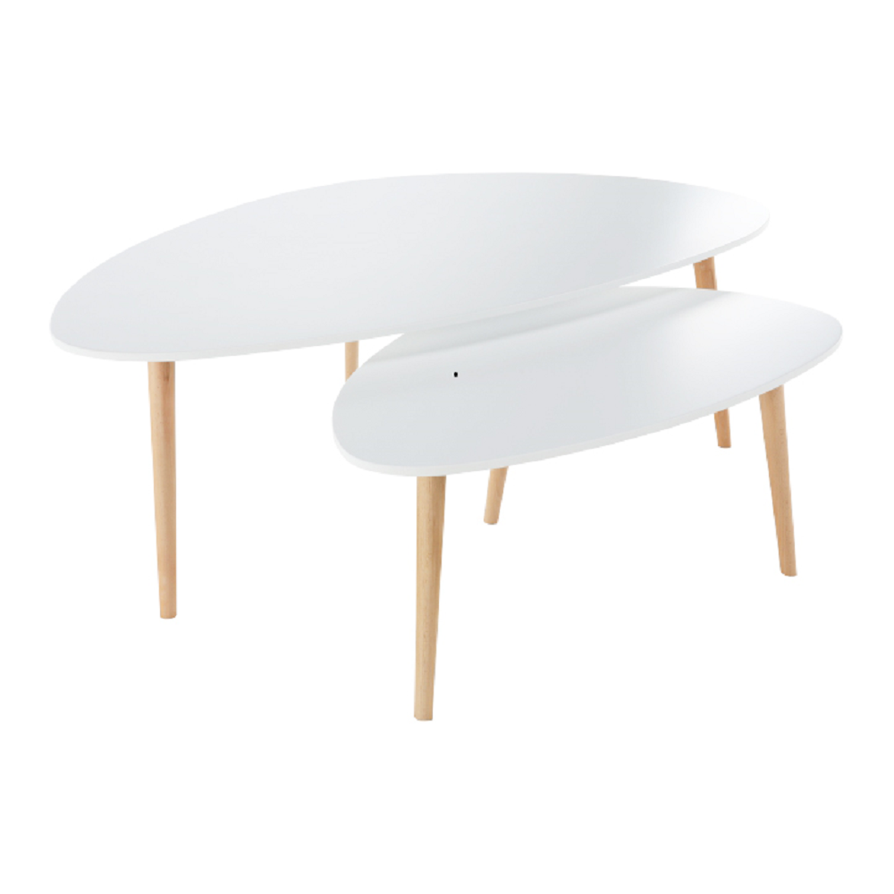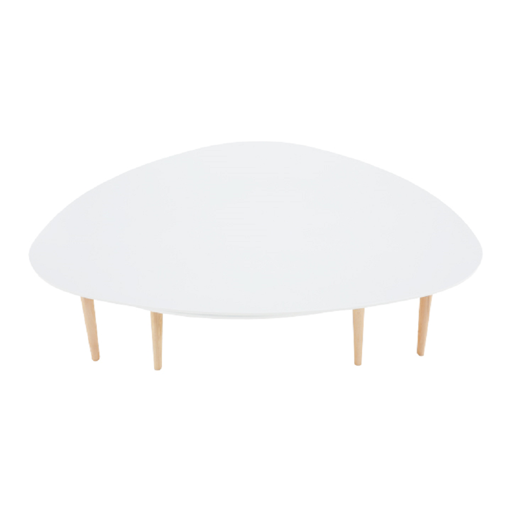 Folko dohányzóasztal, MDF és fa kombinációja, színe: fehér/bükkfa lábakkal. Méretek (SzéxMéxMa): 116x66x45 cm. Lapraszerelten szállítva.