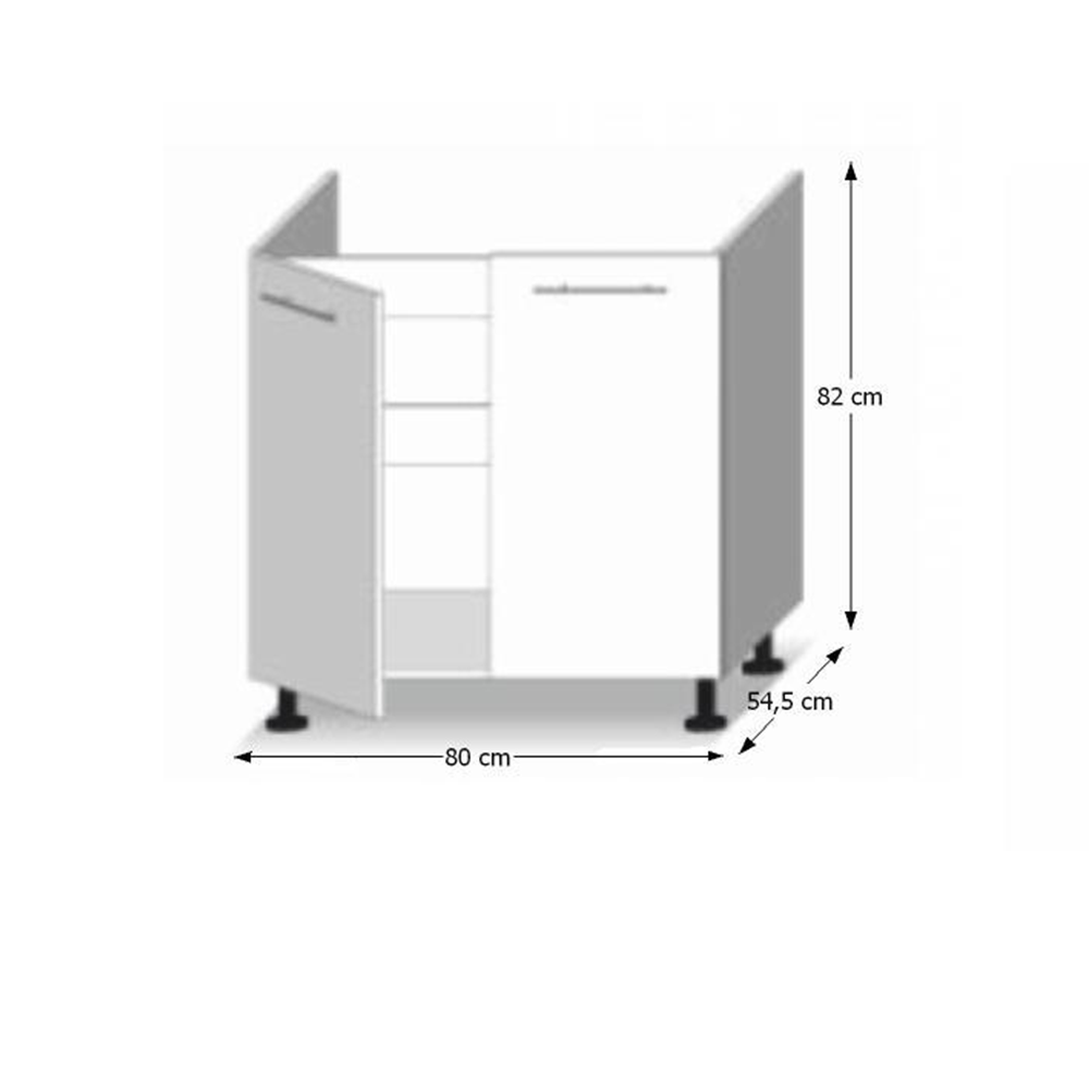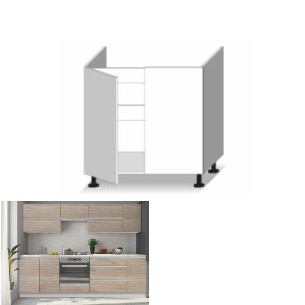 Kétajtós alsó mosogatószekrény az elemes konyhabútorból modern stílusban és változatban