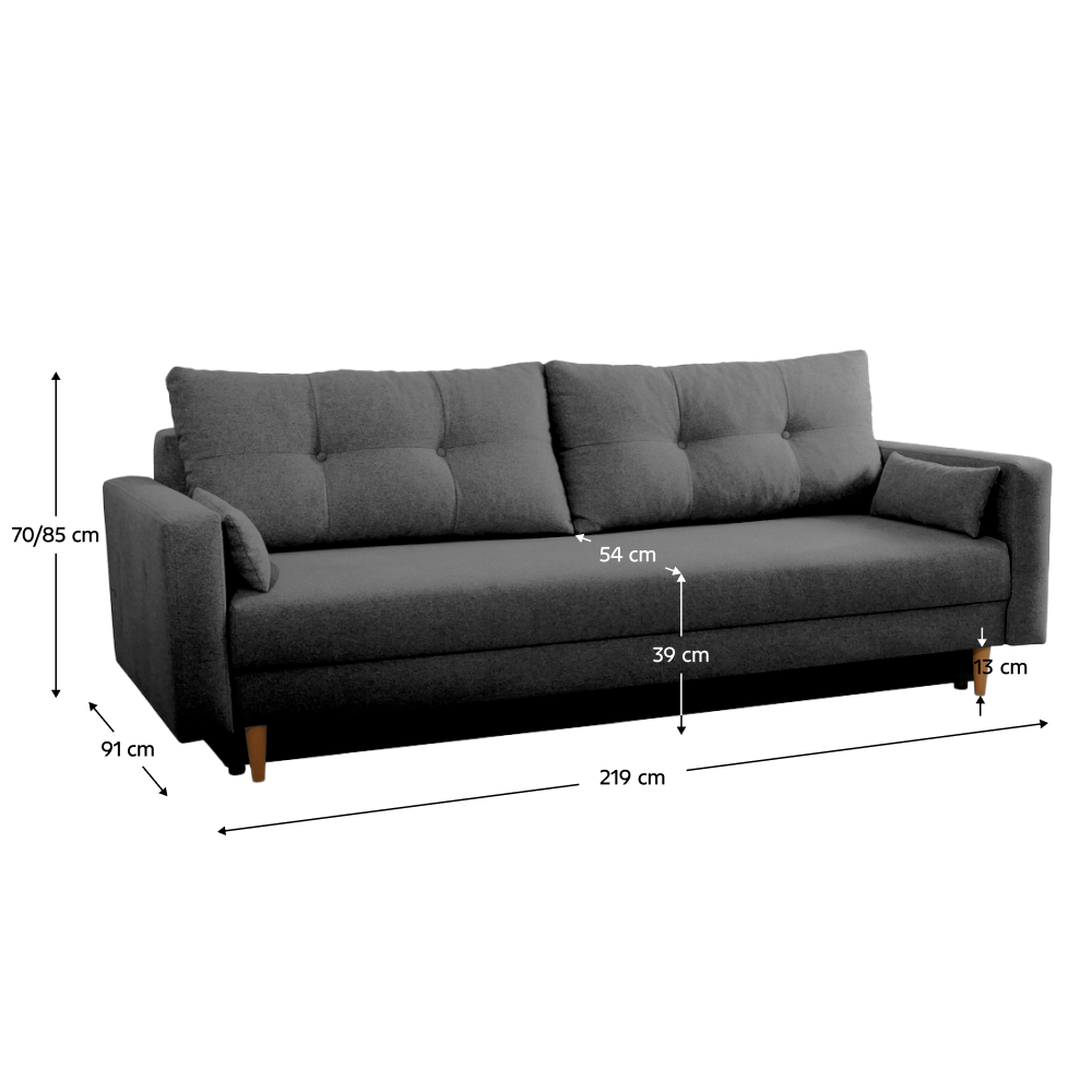 Méretek (SzxMéxMa): 219x91x70/85 cm