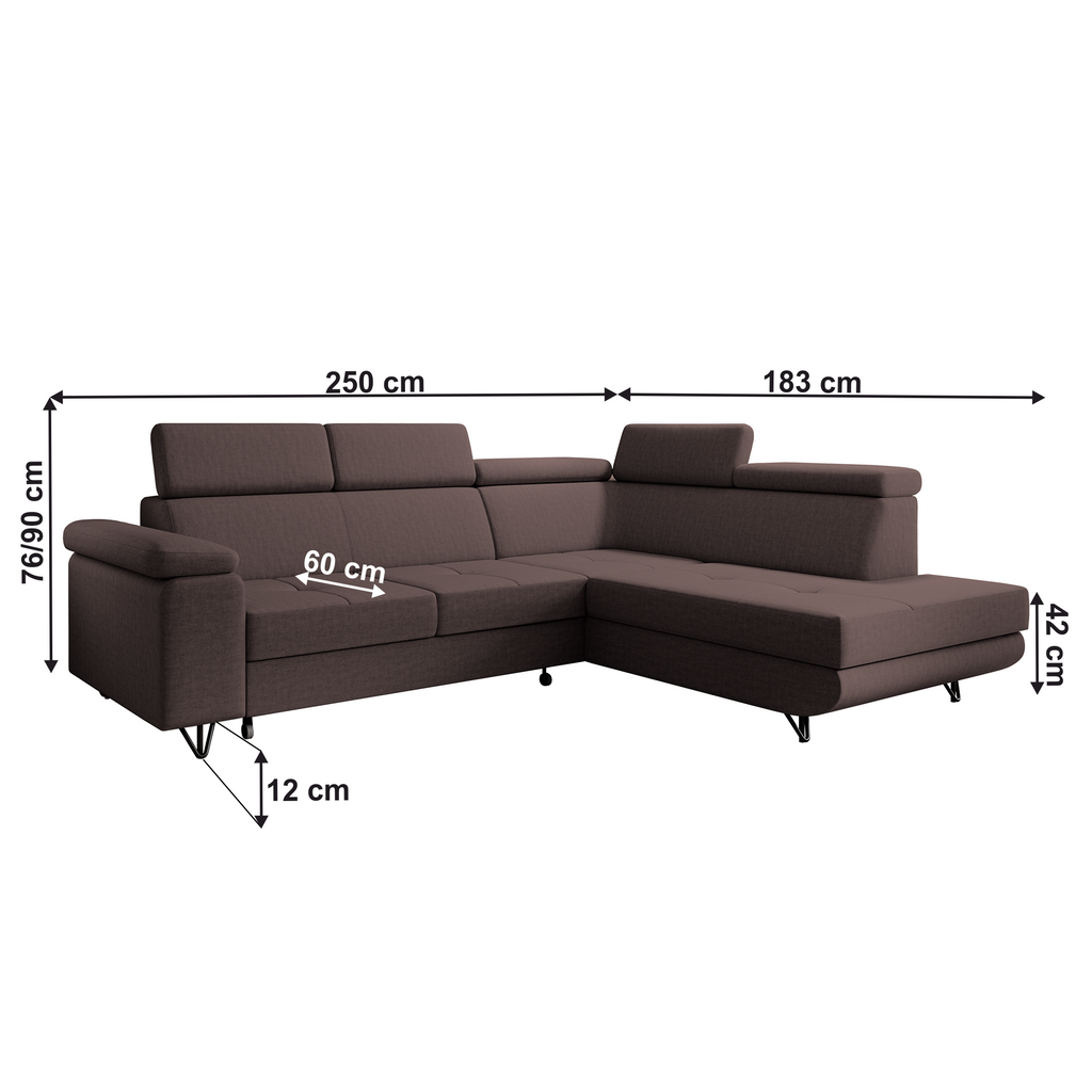 Méretek (SzxMéxMa): 250x183x76/90 cm