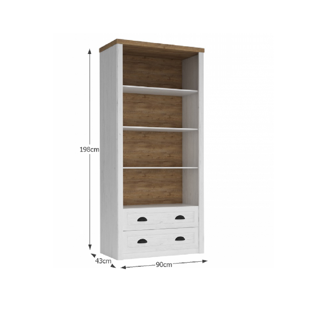 PROVANCE R2 könyvespolc Anyag: laminált DTD Szín: andersen fenyő/lefkas tölgy Méretek (SzéxMéxMa): 90x43x198 cm Váz vastagsága: 15 mm Felsőlap anyagvastagsága: 36 mm