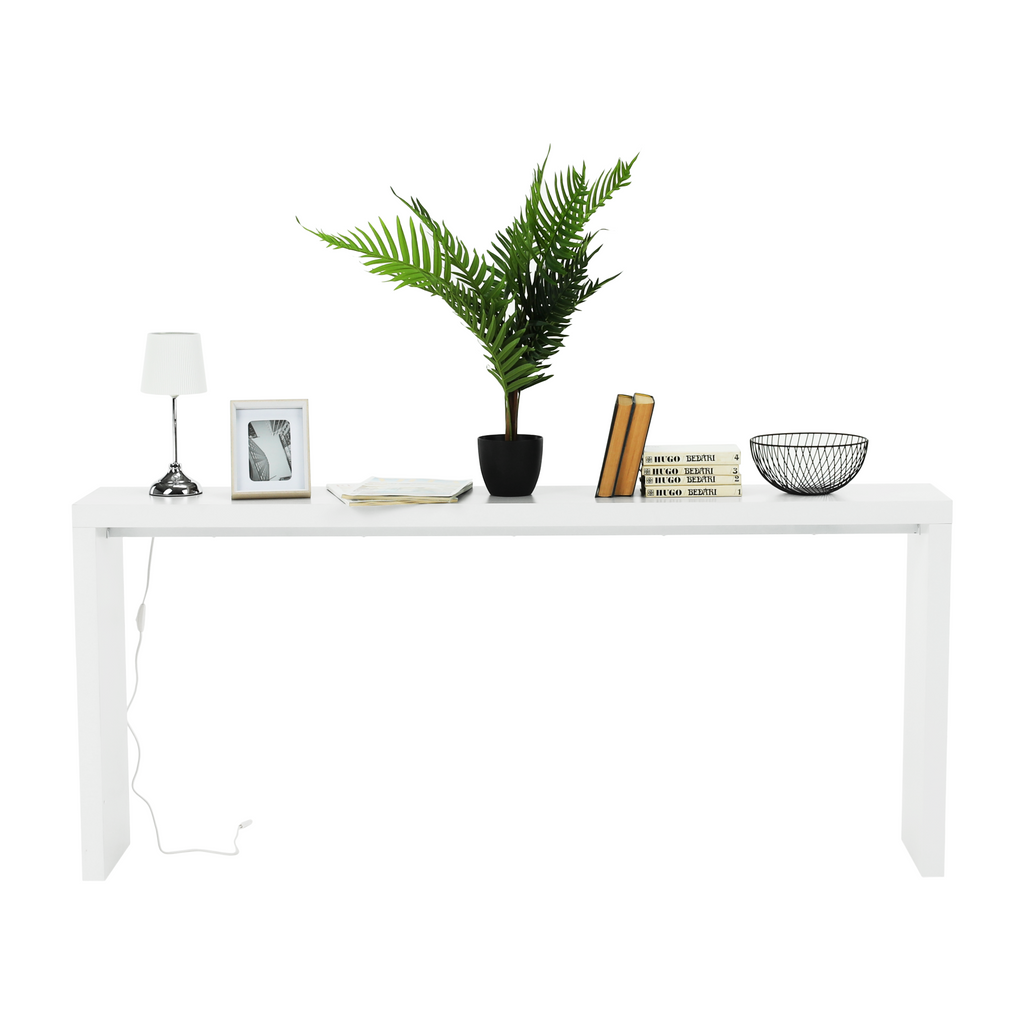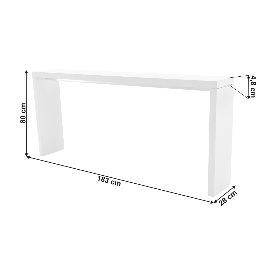 Anyag: laminált forgácslap Szín: fehér Méretek (SzxMéxMa): 183x28x80 cm Szerkezet vastagsága: 48 mm Teherbírás: 30 kg Konzolasztal Bontásban szállítva