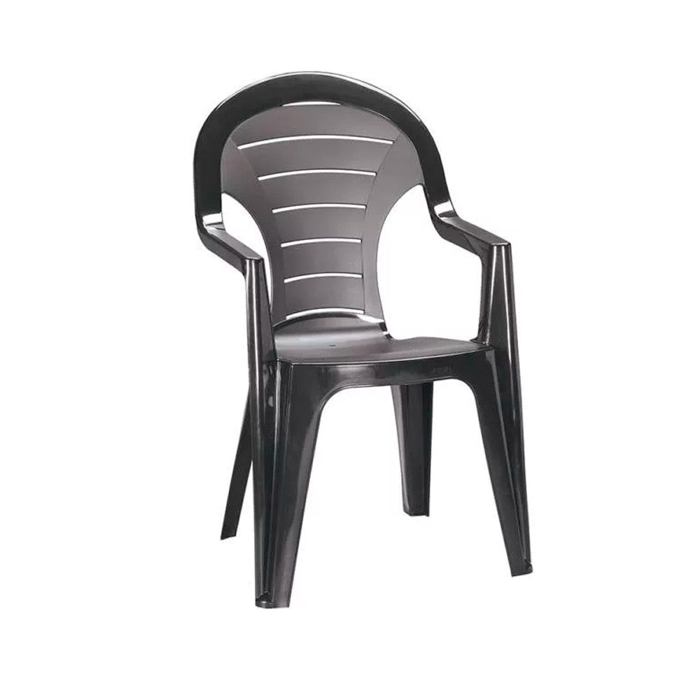 A székek nagy sűrűségű polipropilénből készülnek, mely nem csak erős, hanem rugalmas is – így kényelmesen támasztják meg a hátat. Az anyag nem fakul ki a nap hatására, és az eső sem tesz kárt benne. A könnyű, egymásba rakható kialakítás miatt ideális akár kisebb helyekre is.