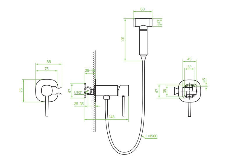 LAVEO POLA rejtett bidécsap bidé zuhanyszettel, szálcsiszolt arany
