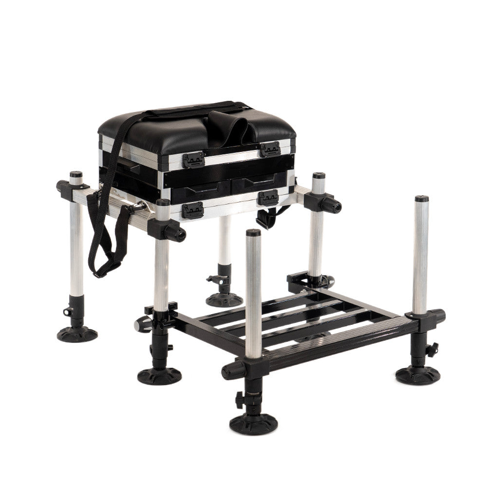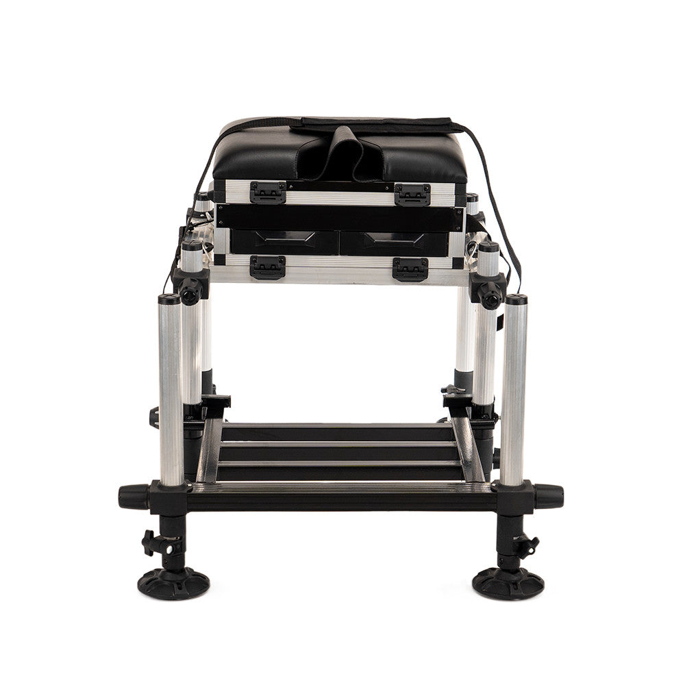 A 53 cm x 46 cm méretű alumínium váz egyedi konstrukciójával magas szintű tartósságot és stabilitást garantál. Ugyanakkor a láda elegáns megjelenése is figyelemre méltó, ami hozzájárul a horgászfelszerelésed stílusához.
