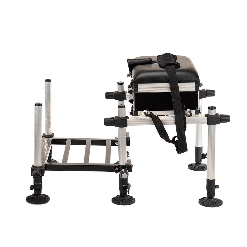 - Állítható lábrendszerek: A kerek D36-os teleszkópos lábak 46 cm-től 74 cm-ig állítható hosszúságban tehetők, és a 45 cm x 43 cm méretű lábtámasszal rendelkeznek, így maximális kényelmet biztosítanak horgászat közben.