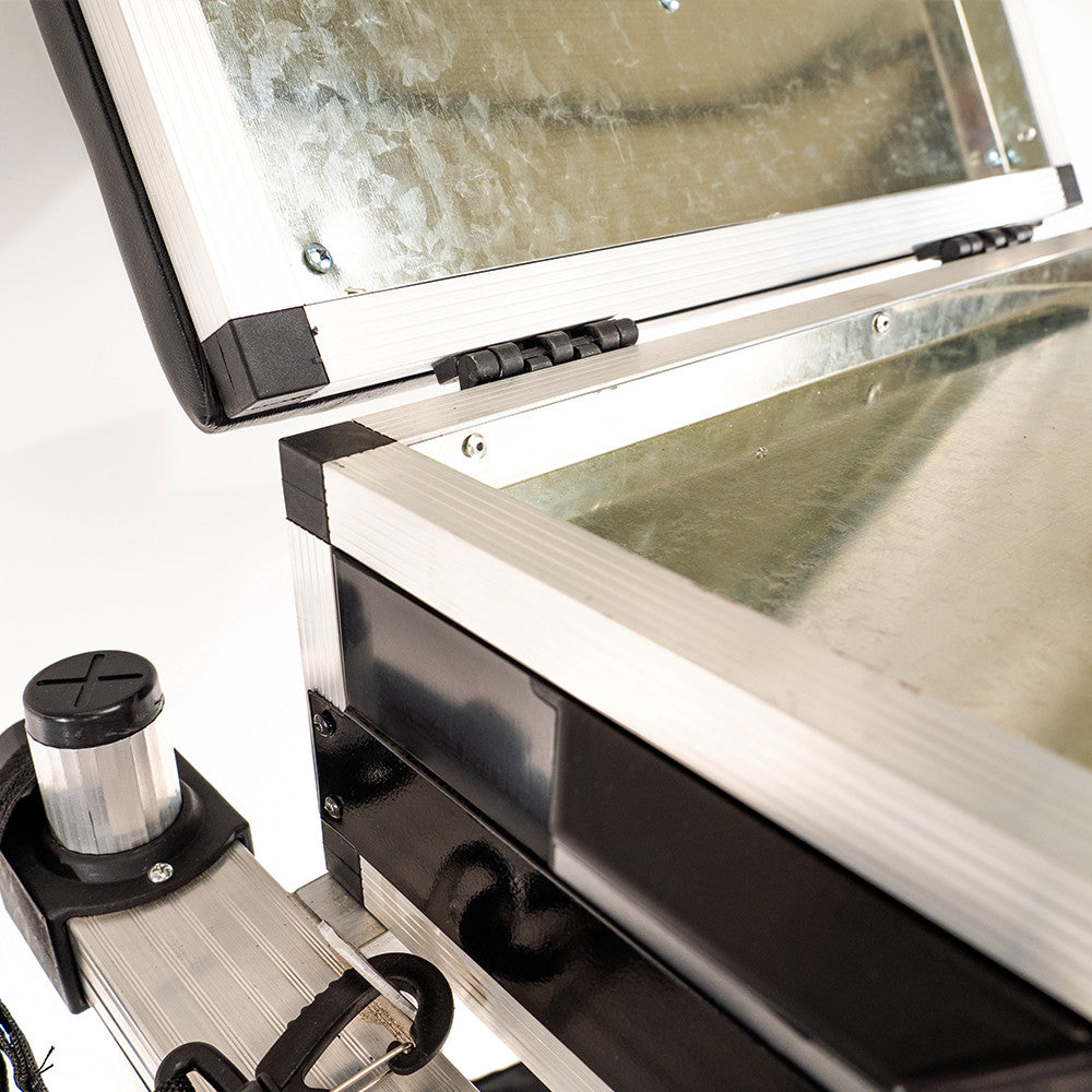 - Masszív alumínium keret: Az 53 cm x 46 cm méretű alumínium váz rendkívül erős és tartós, biztosítva a láda hosszú élettartamát.
