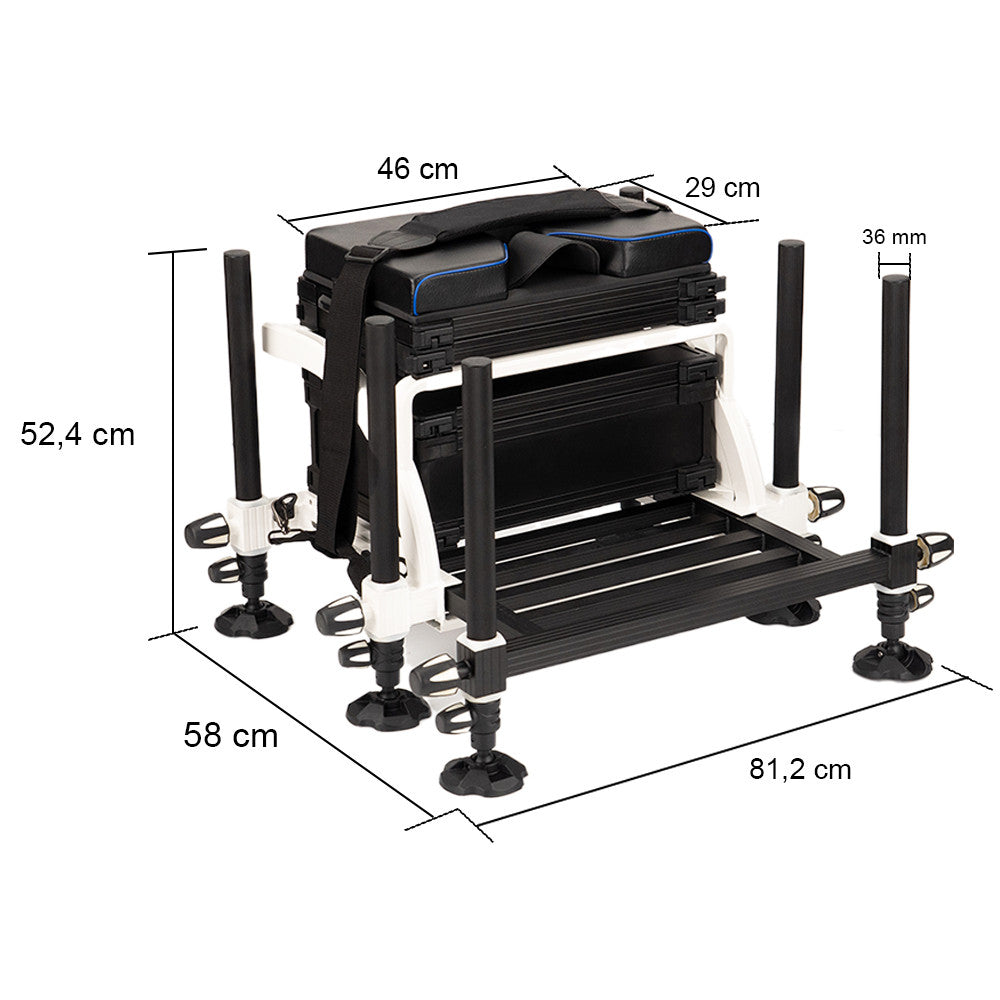 A Leziter X11 Versenyláda D36 a horgászok számára tervezett kiváló minőségű horgászláda. Erős támaszt nyújt a horgászoknak, hogy kényelmesen élvezhessék horgászat élményét.. Az alumínium panelek fekete színe modern és stílusos megjelenést kölcsönöz a ládának. A teleszkópos alumínium kerek lábak állíthatók, így könnyen alkalmazkodhatnak a talajviszonyokhoz, hogy stabil alapot nyújtsanak a horgászat során.