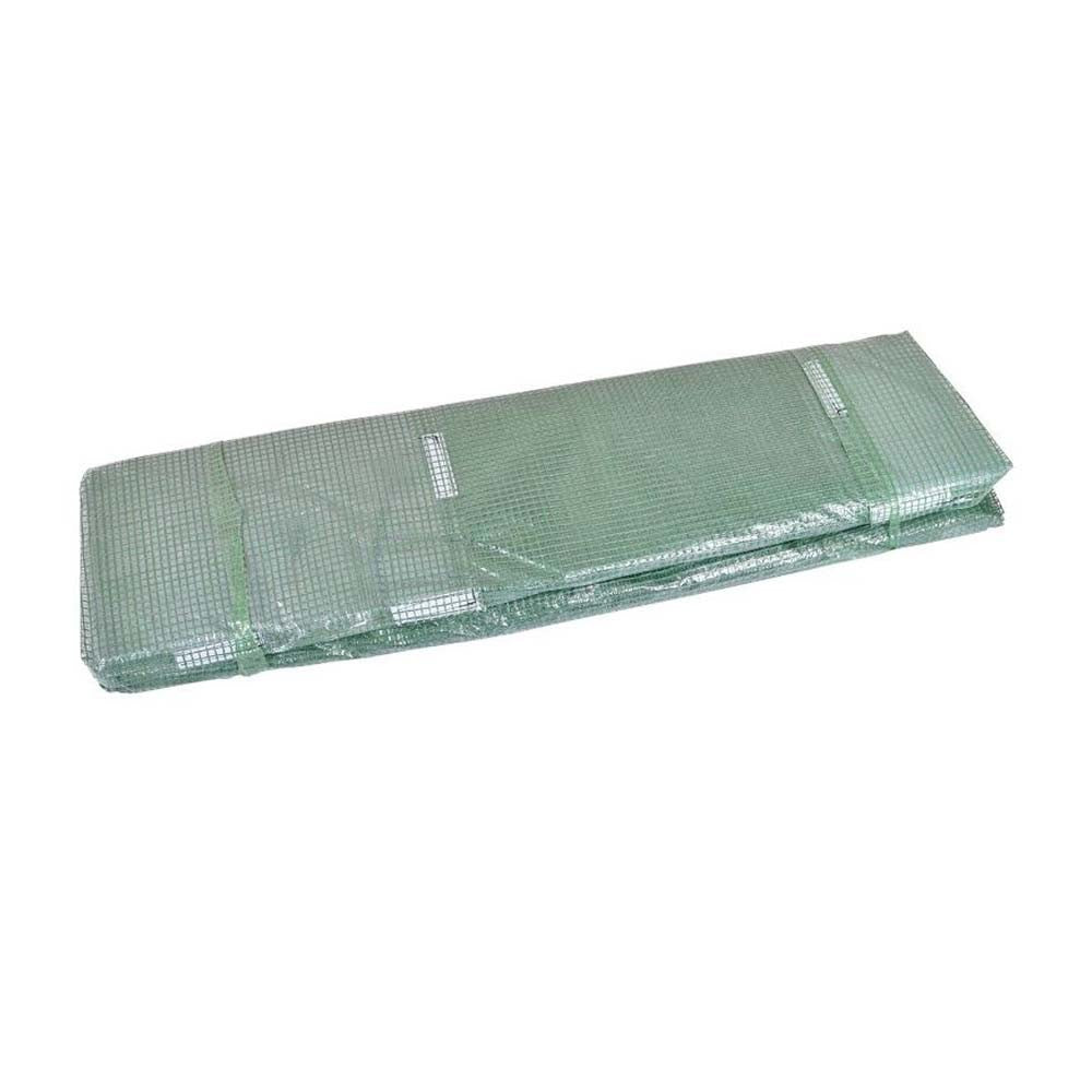 A modern fólia alagút felhúzható ajtóval rendelkezik, ami jelentősen növeli a használat kényelmét. Előnye a 8 hálós ablak , amely biztosítja a levegő keringését, miközben véd a nem kívánt rovarok ellen. A termékkép illusztráció, a csomag csak a fóliát tartalmazza, a vázszerkezetet nem.