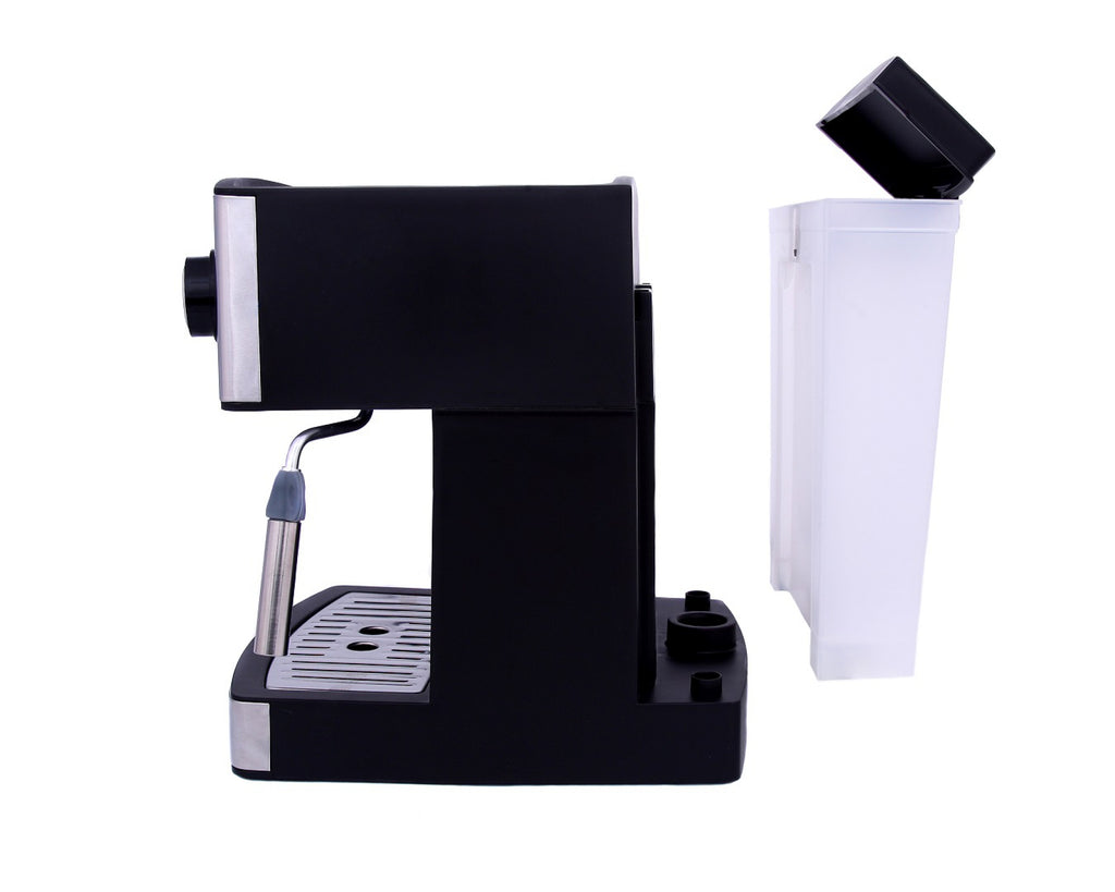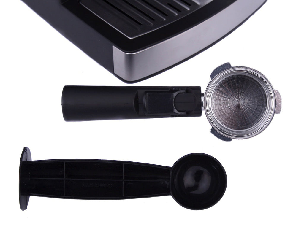 Teljesítmény 850W-Kávéfőzás 15 Bar nyomás alatt-Rozsdamentes acél boiler-1,6L-es kivehető víztartály-Kivehető csepptálca-Gőzkar tejhabosításhoz-Gőz intezitás szabályzó- Espresso és Cappuccino készítés-Készenlét/gőzölés/főzés jelző fények