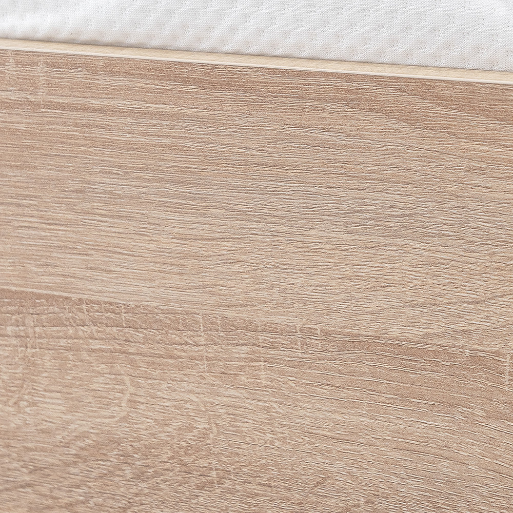 | Anyag | Kiváló minőségű bútorlap, sonoma tölgy oldallappal, sonoma tölgy fejvéggel és ágyvéggel. |