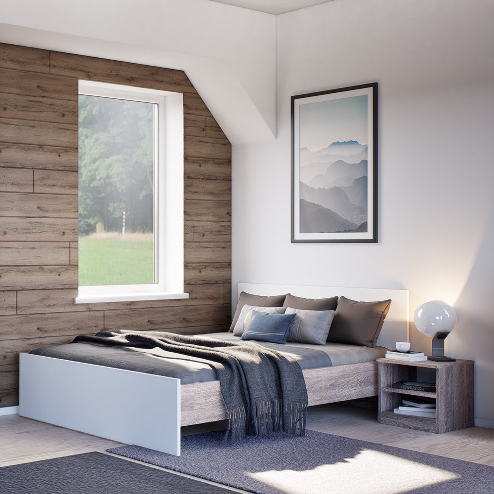 | Anyag | Kiváló minőségű bútorlap, yorki tölgy oldallappal, fehér fejvéggel és ágyvéggel. |