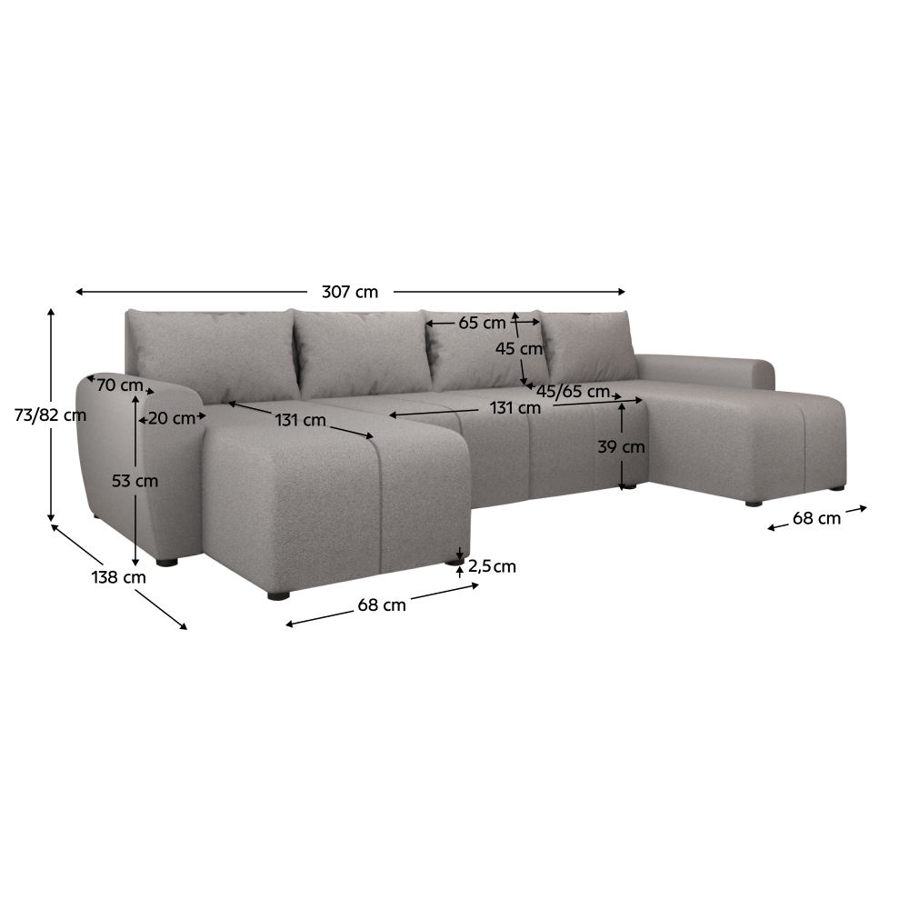 Méretek (SzxMéxMa): 307x138/138x73/82 cm