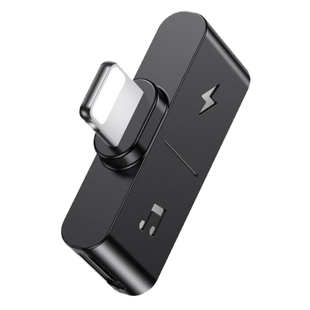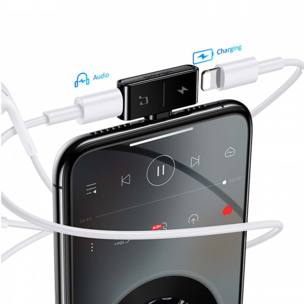 Átalakító adapter mellyel egyszerre hallgathatunk zenét a 3.5mm-es jack csatlakozón keresztül és tölthetjük is eszközünket.
