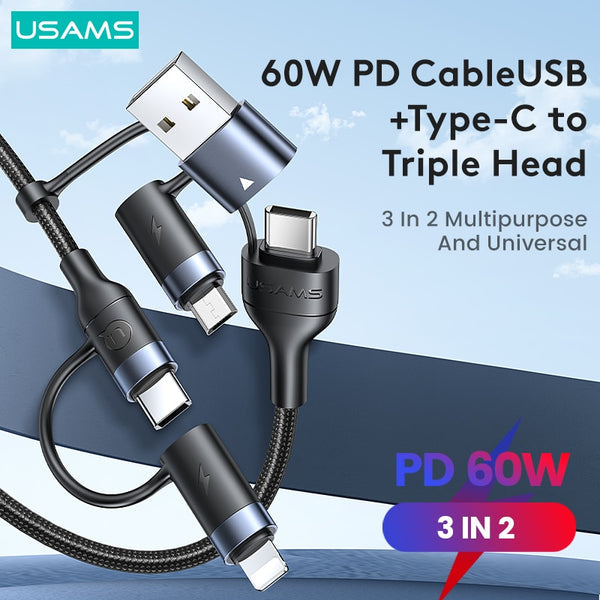 Usams SJ547USB01 5 az 1 ben töltőkábel usb-c, lightning és micro usb ouput, usb és usb-c input, PD, 60W 1435030