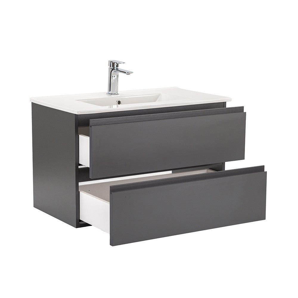 A Vario Pull 80 komplett fürdőszobabútor egy stílusos és praktikus választás modern fürdőszobához. Kompakt méretei ideálisak kisebb és közepes méretű fürdőszobákba is, és a J-profilú, antracit-antracit színű dizájn elegáns megjelenést kölcsönöz a térnek. A csillapítós fiókzáródás és a felfüggesztett kivitel a kényelmet és könnyű tisztántartást szolgálja, míg a minőségi anyagok hosszú élettartamot biztosítanak.