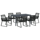 - A szett egy négyszögletes asztalt és hat széket tartalmaz, jól jön a családi étkezésekhez vagy barátok szórakoztatásához kültéren.